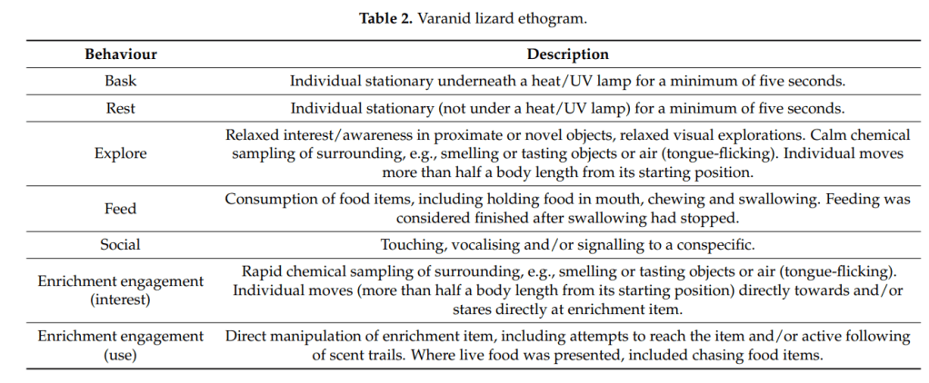 Evaluating Environmental Enrichment Methods in Three Zoo-Housed Varanidae Lizard Species – Waterman et al. 2021