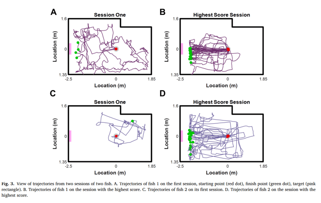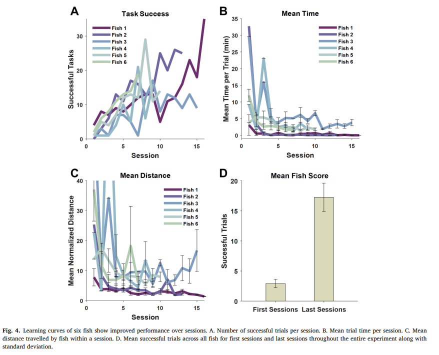 Abstract: To understand navigation systems and whether its universal, they trained fish to navigate a terrestrial environment. They call this method a domain transfer methodology and placed a fish in a tank that was set upon a robot which moved whenever the fish was close to the tank wall and facing outwards. The found that the fish could successfully navigate a terrestrial environment with minimal mistakes.