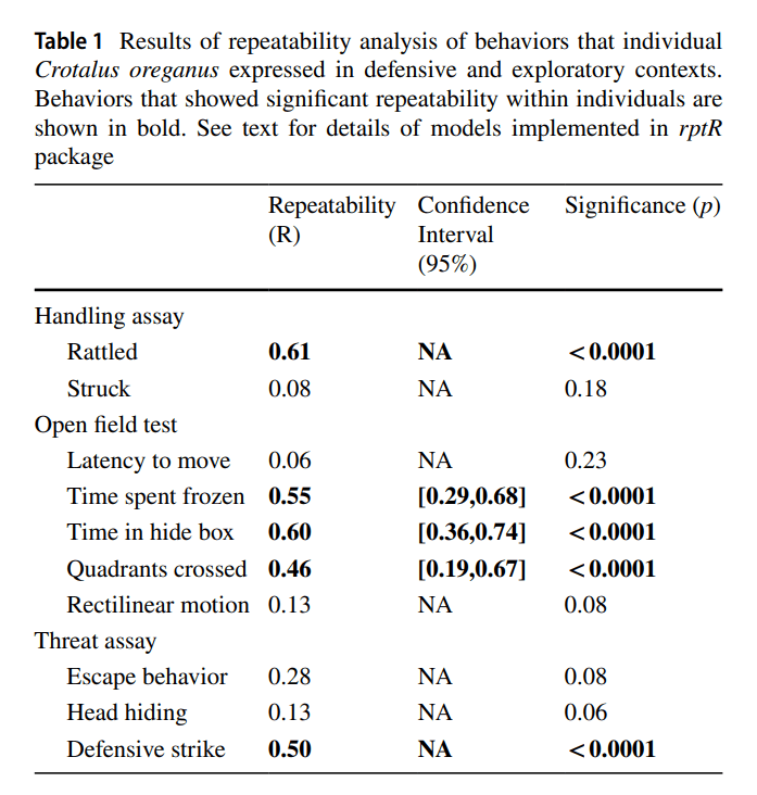 Investigating personality in vipers: individual rattlesnakes exhibit consistent behavioral responses in defensive and exploratory contexts – Gibert et al. 2022