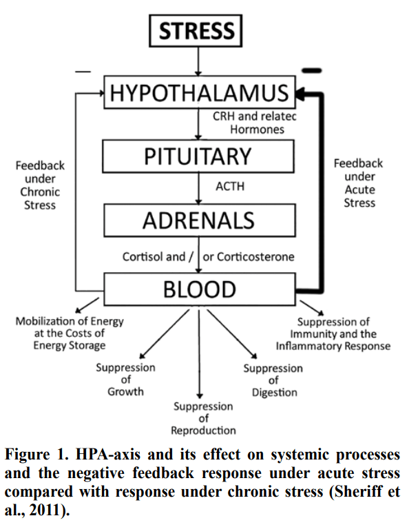 Stress responses can be seen in all vertebrates and snakes are not the exception. Stressors are known to cause the subject to have a lack of control over the situation by adding a component of uncertainty. When snakes are faced with a stressor they have a stress response that includes releasing catecholamines such as adrenaline and noradrenaline into the blood but there is also an endocrine stress response that uses the Hypothalamic-pituitary-adrenal axis (HPA) to release glucocorticoids like corticosterone into the blood. Snakes release corticosterone which is the same as cortisol in mammals and it can be seen as an adaptive hormone that manages energy availability to body systems through gluconeogenesis (This could mean that if a snake is kept in a stressful situation like a small cramped rack system and had multiple experiences with rough handling techniques for milking, then it could have a higher corticosterone level that impairs it’s ability to manage energy availability which could then impact venom quality or quantity?). This study states that chronically sustained stress responses can cause for non-adaptive levels of glucocorticoid secretion which does impair welfare of subjects with multiple studies as references. High levels of corticosterone can lead to immune suppression making the individual more prone to getting an infection of some sort. Also the individuals can perceive stress in unique ways, a stressor for one individual may be innocuous to another, this can be affected by sex, age, reproductive condition and former experiences. In the wild numerous factors can affect snake stress like food deprivation, habitat loss, and climate change. In captivity the snakes are normally stressed by management issues like temperature, humidity, enclosure size, crowding, and inability to engage in natural behaviours. Quantifying chronic stress in wild snakes is crucial if we are managing populations and habitats, and in captivity it is important to gauge welfare.