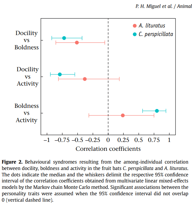 Personality and behavioural syndromes in two species of fruit bats (Chiroptera: Phyllostomidae) – Miguel et al., 2024