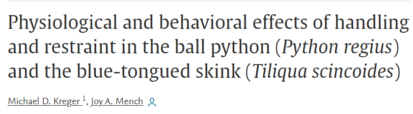 Written with partial aid of chatgpt for summarization purposes THE PHYSIOLOGICAL AND BEHAVIORAL EFFECTS OF HANDLING AND RESTRAINT ON THE BALL PYTHON (Python regius) AND THE BLUE-TONGUED SKINK (Tiliqua scincoides) – Kreger and Mench, 1993 Introduction: This paper starts off by highlighting the use of handling reptiles for various settings like zoos, educational presentations, medicalContinue reading “Container restraints increase cort levels in pythons”