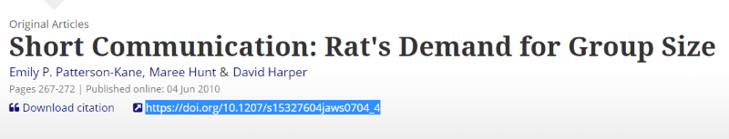 Short Communication: Rat’s Demand for Group Size – Patterson-Kane et al. 2004 Abstract: Since social isolation can be detrimental to rat welfare, pair housing and group housing were explored. The study was conducted using the following group sizes 1, 2, 4, 6 and 12 rats. Pair housing was beneficial in reducing aggression and disease. InContinue reading “Girls want girls – Rats benefit from group housing”