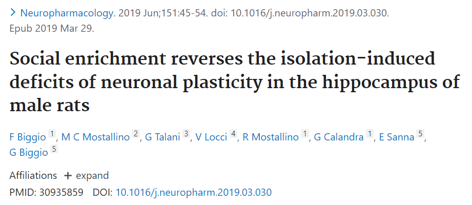 Social enrichment reverses the isolation-induced deficits of neuronal plasticity in the hippocampus of male rats – Biggio et al. 2019 Introduction: Adolescence is a critical life stage for subjects because this is a time when the brain is exhibiting high functions and high amounts of adaption, and if stressed during this time it can causeContinue reading “Reversible Brain Deficits from Social isolation”